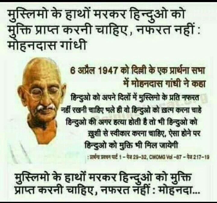 गांधी का कथन “हिन्दुओं को मर जाना चाहिए, मगर नफ़रत नहीं करनी चाहिए”