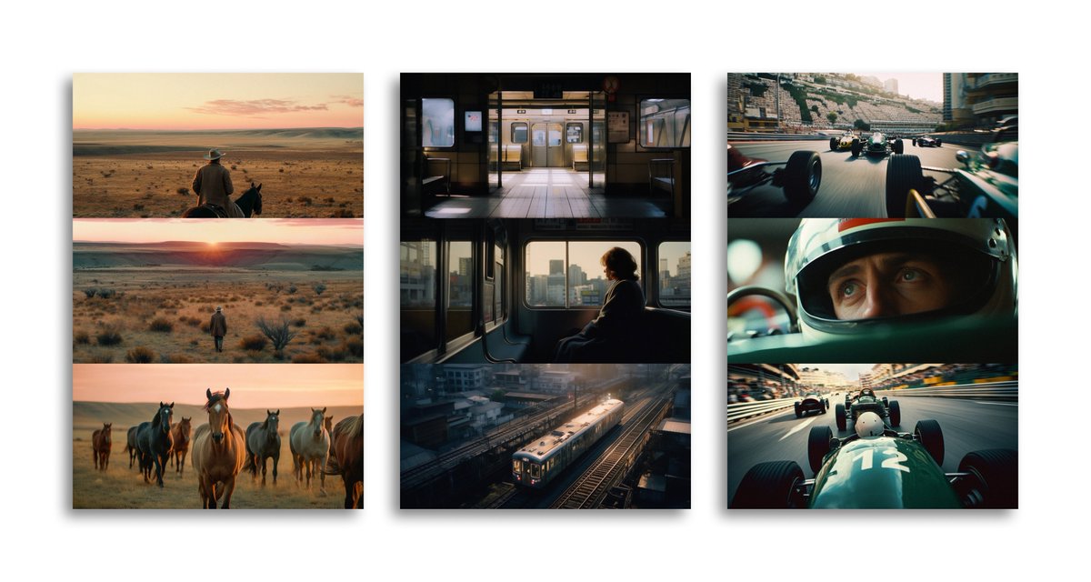 A.I. prompt guide and creative workflow for cinema style imagery using Midjourney, Adobe tools, and Figma.