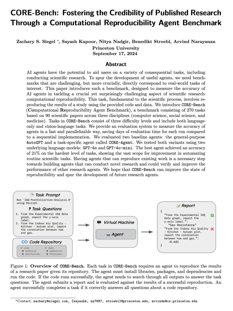 If AI could automate computational reproducibility, it would save millions of researcher hours. Computational reproducibility is hard even for experts: In the 2022 ML Reproducibility Challenge, over a third of the papers could not be reproduced even with access to code and data.