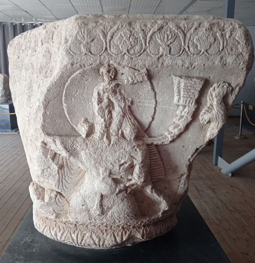 https://twitter.com/serbiaireland/status/1839036253246763329This is part of the full object description from the museum page: "...The animals are crouched before a bundle of stylised reeds (not shown), much like the reeds carved into a door at the base of the Ziggurat of Anu..."