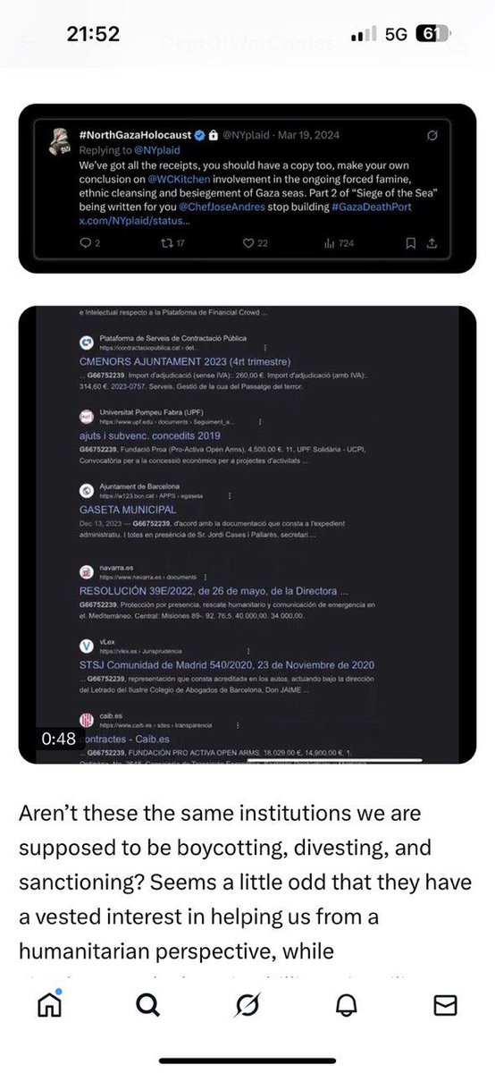 🔳 Open Arms + WCK + EU/US humanitarian theatre