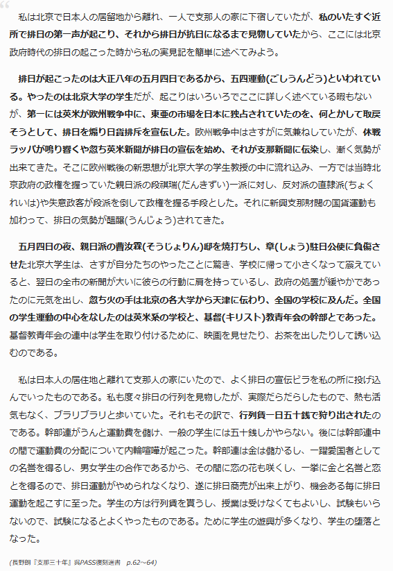 当時中国には国定教科書がなく、商務印書館とか中華書局とかいうところで勝手に教科書が作られていた。排日が流行になると盛んに排日記事を入れた教科書が売り出されるようになり、初めて排日教科書が現れたのは大正八年(1919年)で地理の教科書が最初だったという。