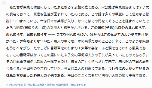 火野葦平は昭和戦前・戦後期に活躍した小説家で、1937年に支那事変に応召し、翌年彼が戦地で書いた徐州会戦の従軍記『麦と兵隊』(GHQ焚書)がベストセラーとなったほか多くの作品を残している。1938年に彼が廣東で撮影した写真と文章。