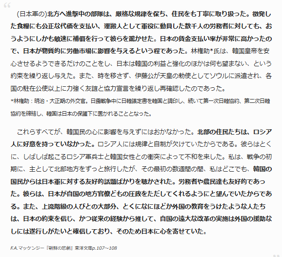 韓国政府は、日韓議定書を結ぶ一ヶ月前の一月二十一日に、日露交戦の折には戦時局外中立をすると宣言したばかりであったのだが、二月九日の仁川沖海戦で日本の艦隊が露艦ヴァリャーグとコレーエツおよび露船スンガリーを攻撃してこれを爆沈させると、韓国は親日に一変して、二月二十三日に日韓議定書を締結したのである。