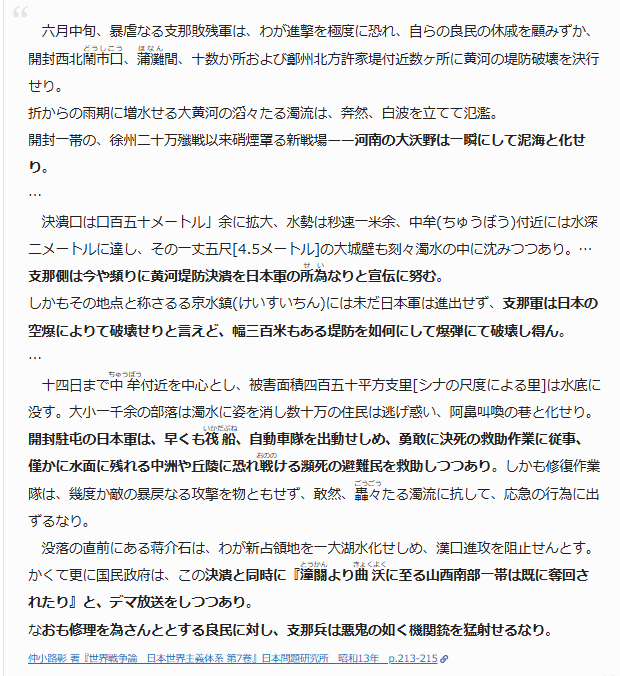 黄河決壊事件のことは当時のわが国の新聞などにもちろん報道されたのだが、ネットで見つけた新聞の画像では、記事の本文が殆んど読めない。