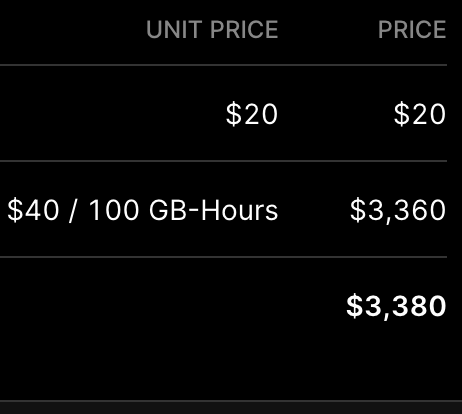 Vercel said it was a "runaway process" or uncaught exception in our code which caused subsequent failures (costing $500 per hour). I had no idea the bill was continuously growing this fast and this could have easily cost me $30k in a few days if I didn't notice it.