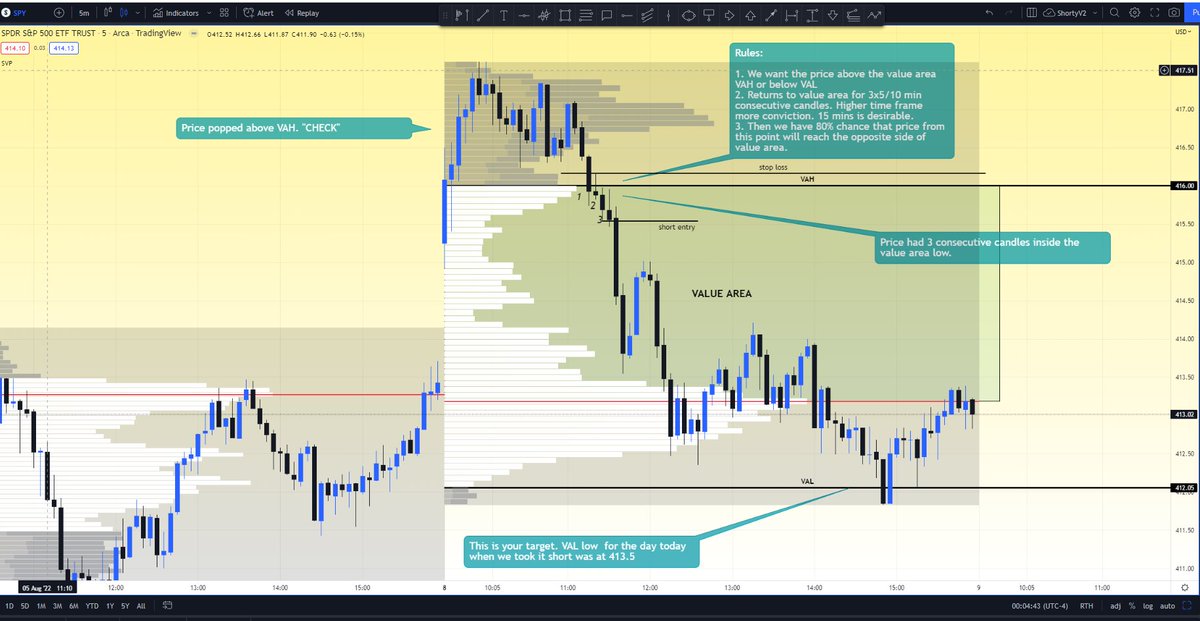Majority of session volume (one day of trading) happens to be concentrated within 68% of the Value area. 68% is also one std deviation. Statistically speaking, it adds up :) Big money will trade within value area until they have traded enough shares and ready to pick direction