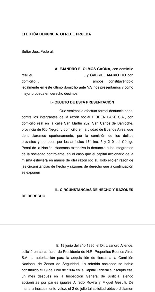 Lewis compró dos estancias de más de 11.000 hectáreas, a través de una sociedad llamada Hidden Lake, en 1996, en violación a las normas que prohíben que un extranjero tenga propiedades en zonas de seguridad de frontera.