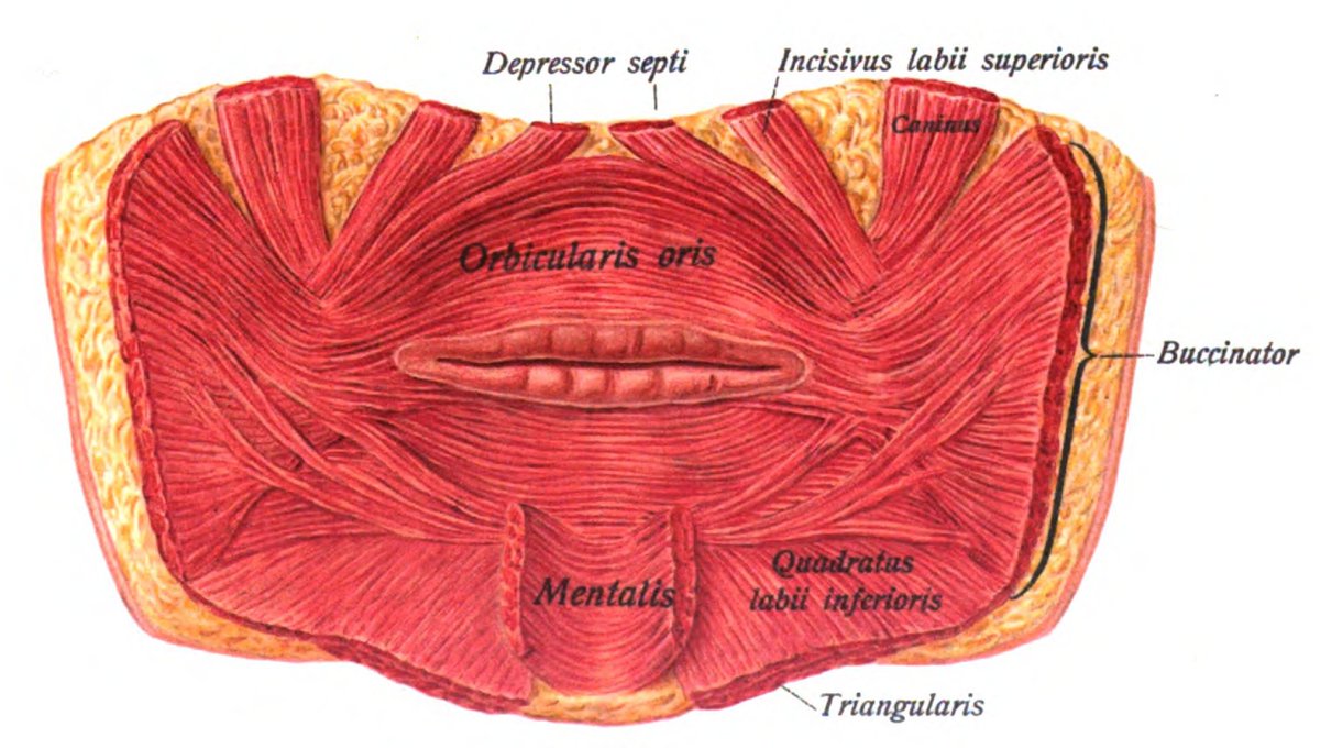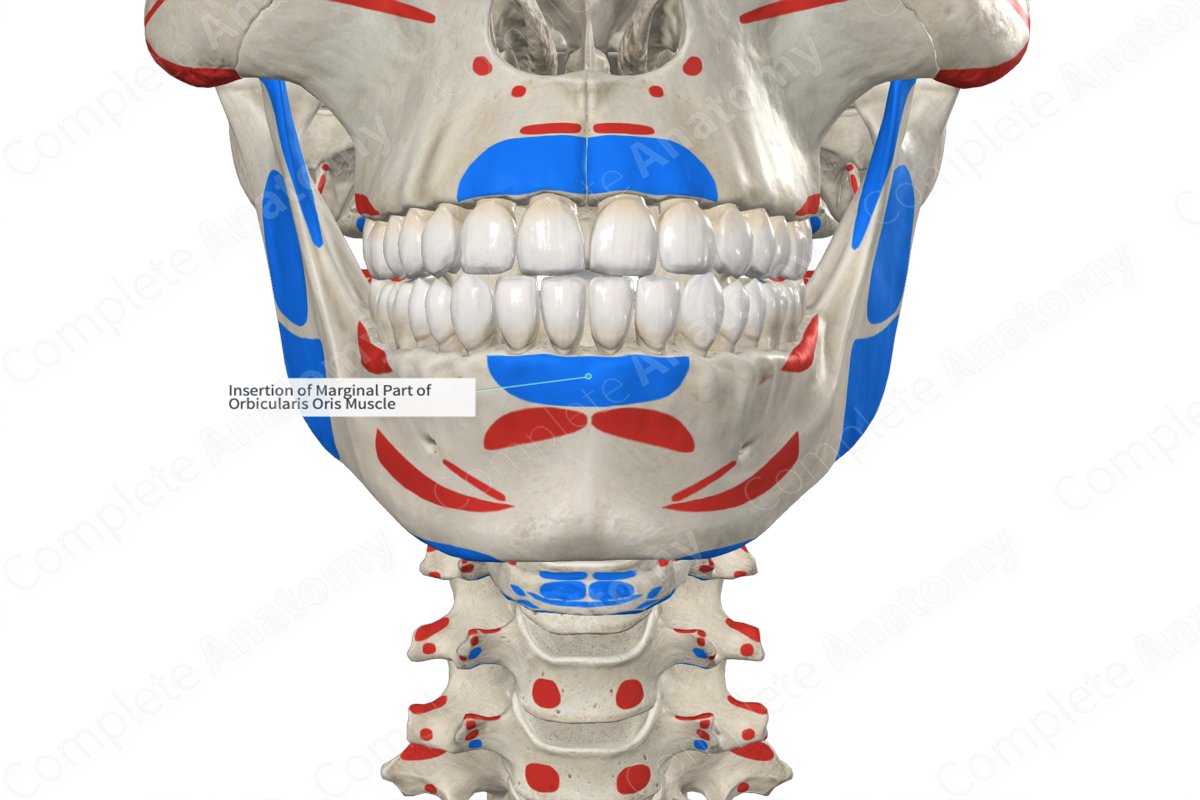 The orbicularis oris (OOr) attaches to both the maxilla and mandible, encompassing the mouth. It contains several layers of semicircular fibers in both the top and lower halves. These fibers are interwoven with other nearby muscles such as the buccinator.
