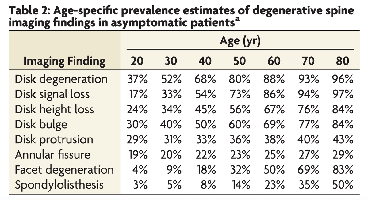 52% of 30yo and 68% of 40yo have some degree of disk degeneration: