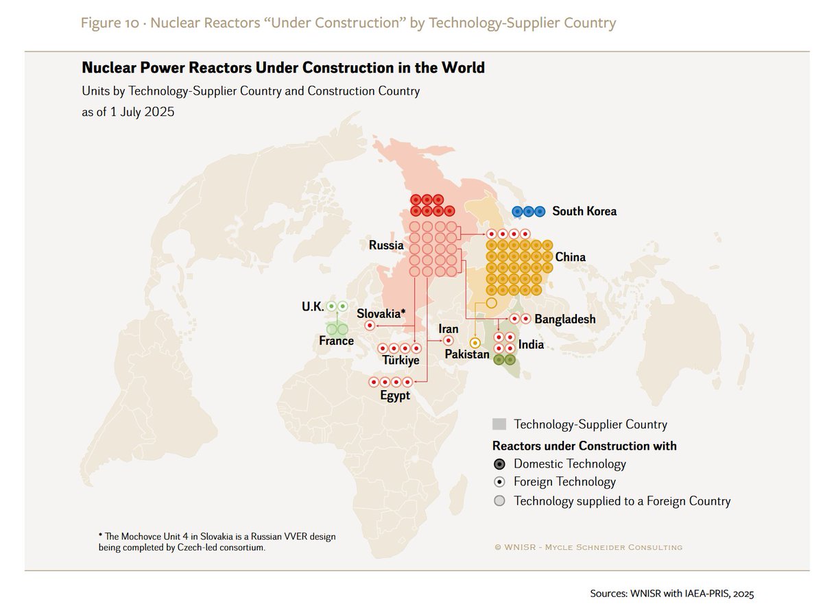 Brisant: 98% aller neuen Atombauten seit 2020 werden von russischen oder chinesischen Staatsunternehmen gebaut. Atomkraft ist zur Technologie der Autokraten geworden. Eine gefährliche Abhängigkeit zu Russland zeigt sich besonders bei der Bereitstellung der Brennstoffe.