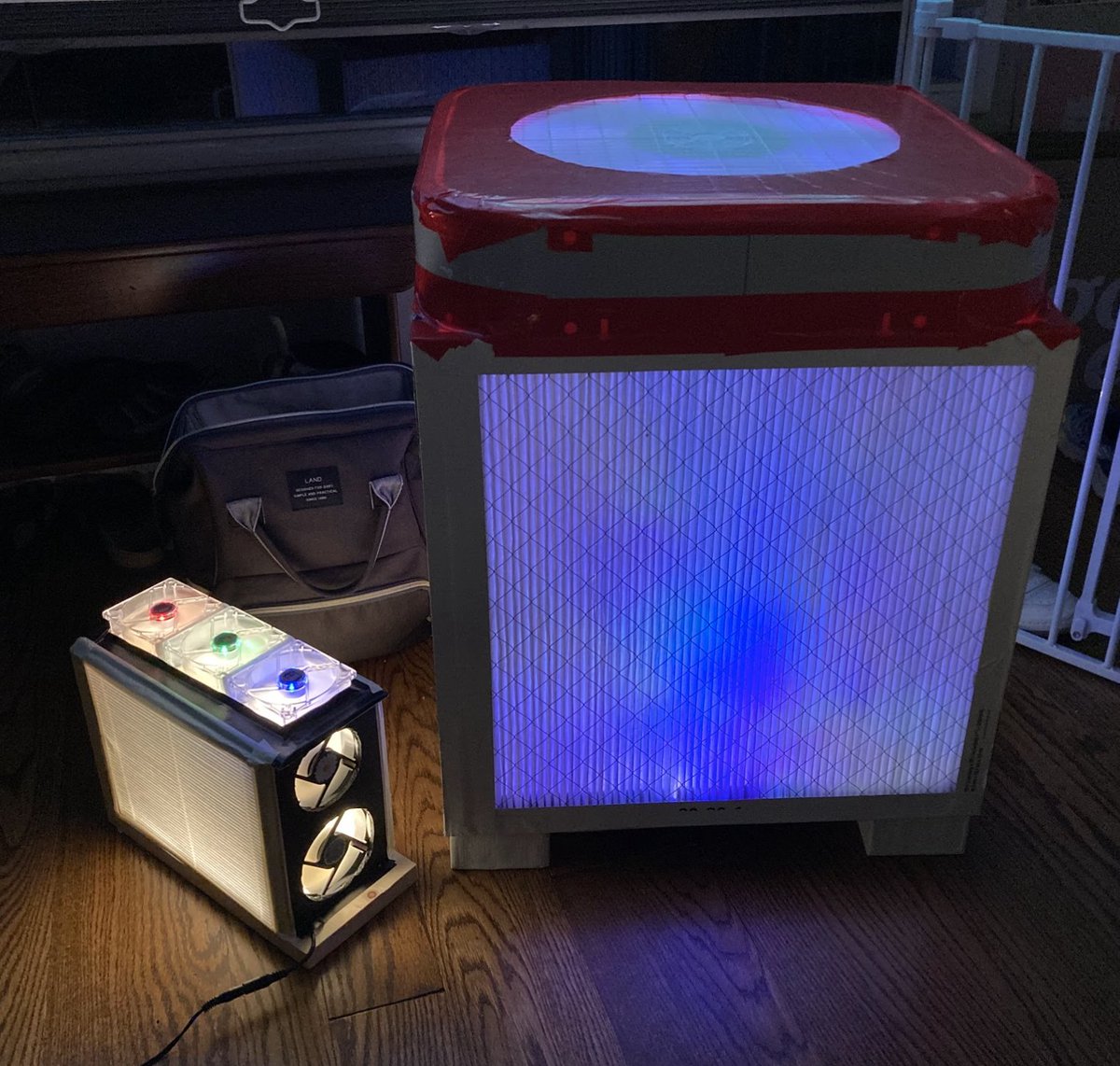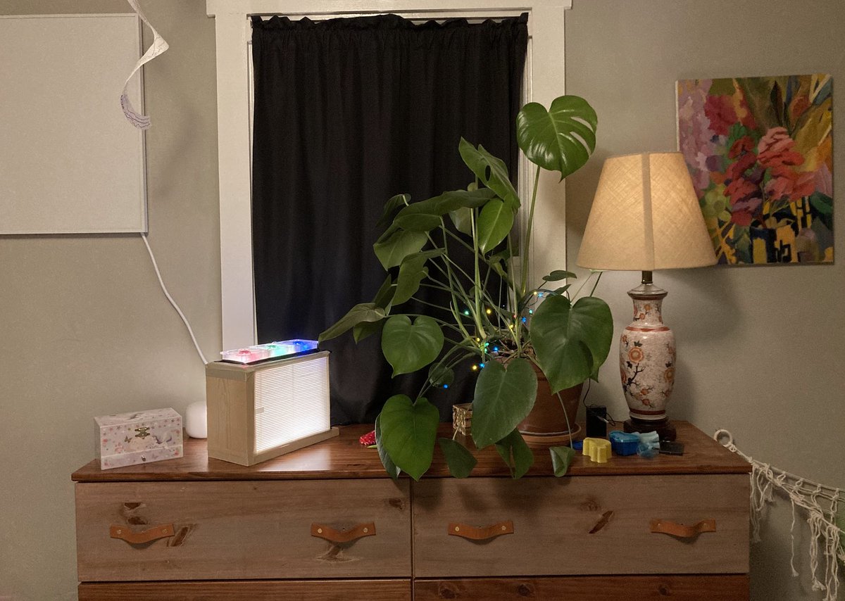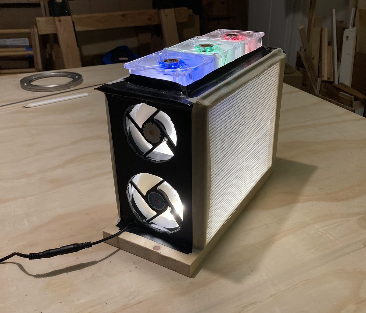 Here's my latest mini-purifier/lamp, using 2 small Uppatvind filters from Ikea. This one isn't well-optimized, but to test some ideas/parts and end up with a little quiet air purifier for my daughter's room. 1/