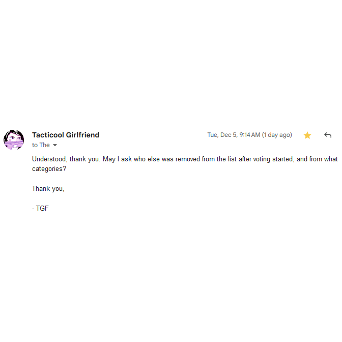 for the manufacturers and marketers and thus, I have not historically tracked the categories and results.Regardless, I've been nominated for it three years in a row now. The previous two years, it was for the category "Breakout Creator of the Year". I never won the (2/19)