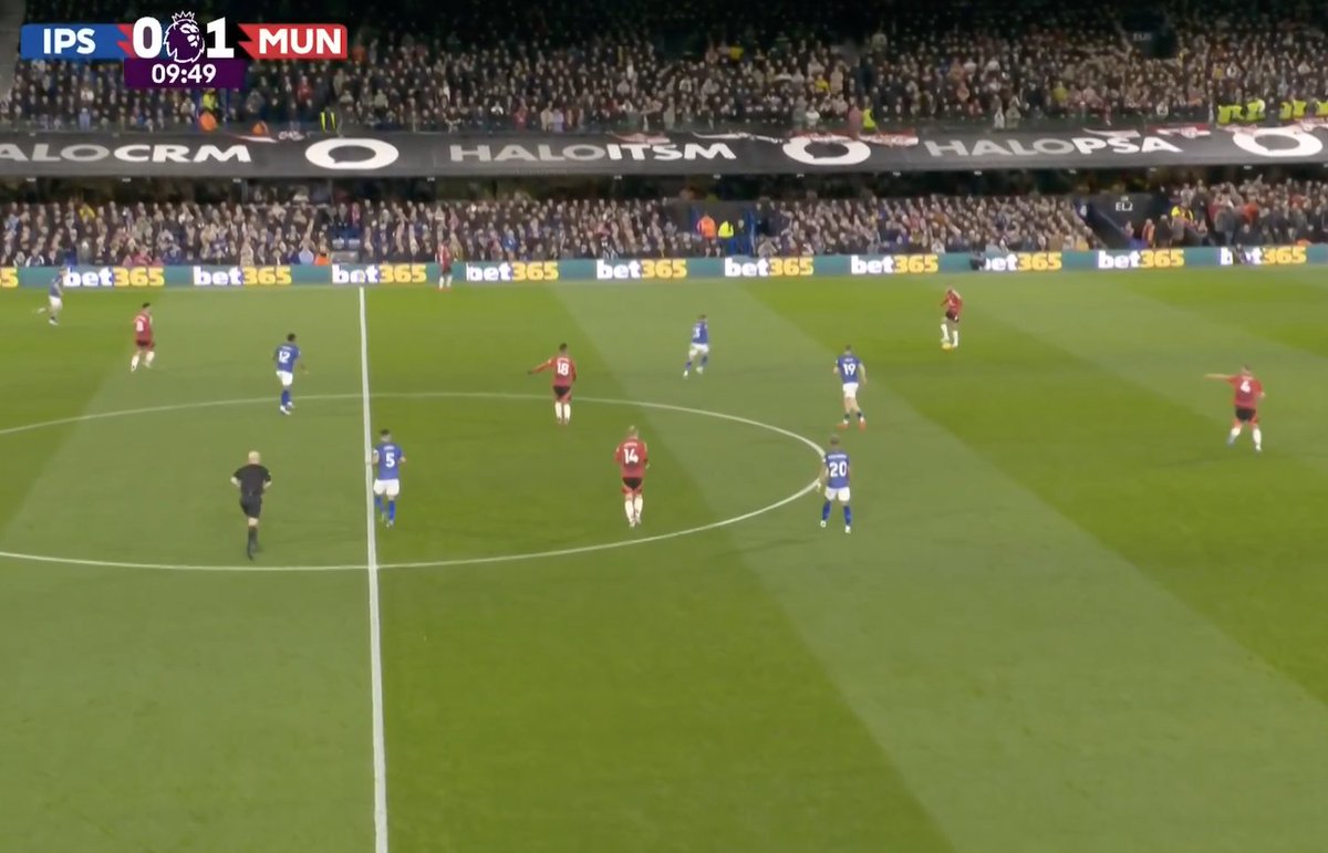 Firstly, what is Amorim trying to do? The macro idea is to lure opposition to press centrally, which opens up wide areas for progression.