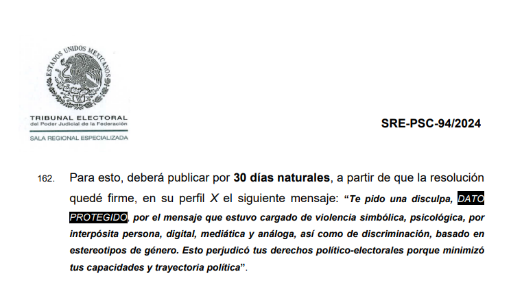 El esposo de DATO PROTEGIDO salió en su defensa y aseguró que en ninguna parte de la sentencia dice que por durante 30 días Karla Estrella debe pedir perdón en X.