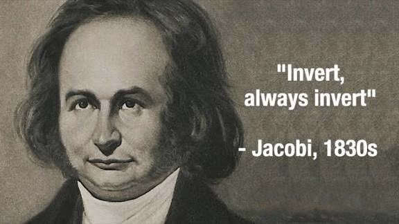 Esse framework vem de um matemático alemão chamado Carl Jacobi. Sempre que enfrentava um problema difícil, ele dizia: "Invert, always invert" (Inverta, sempre inverta).