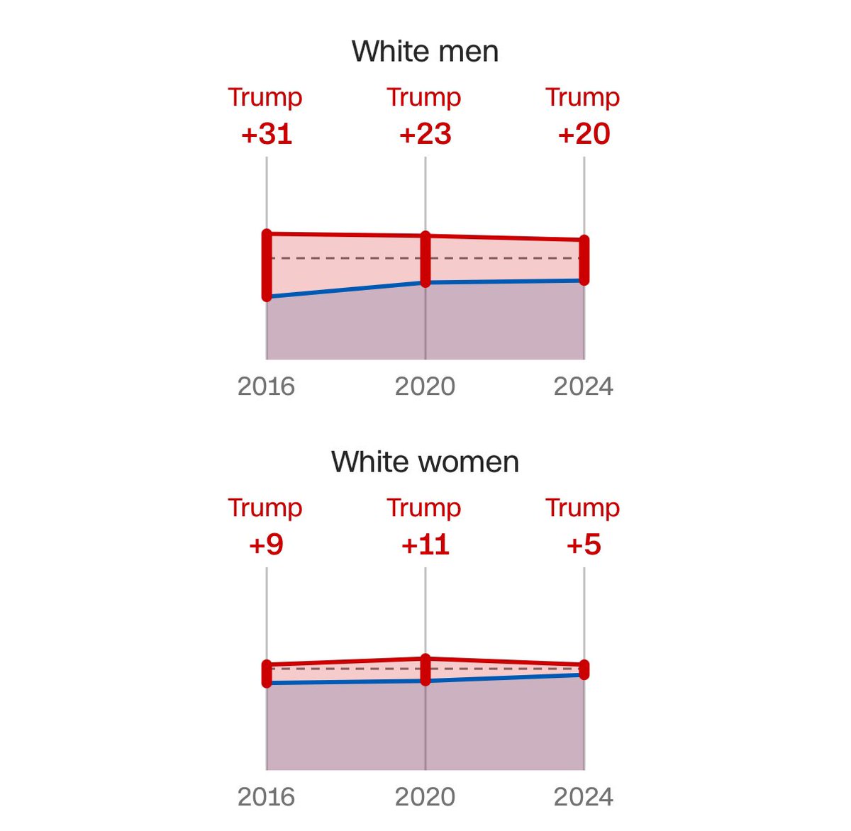 huh so actually this is the least whites have ever liked trump