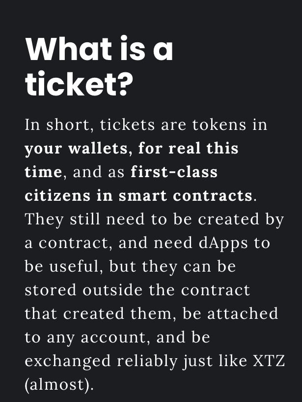 1/7 An interesting aspect about #Tezos tickets is that they will allow for the creation of more decentralized tokens bc the a) storage will be decentralized and the b) “ownership” will be at the protocol level not the smart contract level. 2/7 Which is a theme for Tezos. The motto for #Tezos could almost be “Protocol level all the things” — Its leaping ahead of other blockchains bit by bit doing this. And its the Tezos governance system that pushes this forward