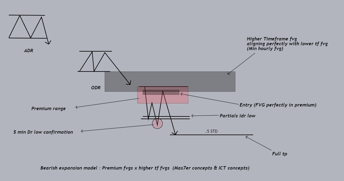 Bearish expansion model (Dr low x premium FVG x higher Tf)
