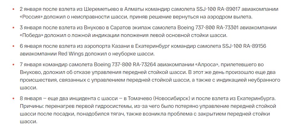 С первых чисел января поломки самолетов начали происходить каждый день. Одной из наиболее частых проблем стали шасси. Компоненты колес самолета выходят из строя быстрее всего и являются расходным материалом. 2/7