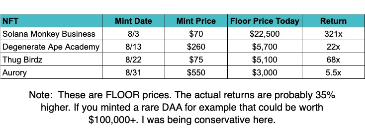 https://twitter.com/DemonColIector/status/14744095562727710732. Around this time, all the blue chips had just launched - SMB, Thug Birdz, Degen Apes. There were only a handful of projects.