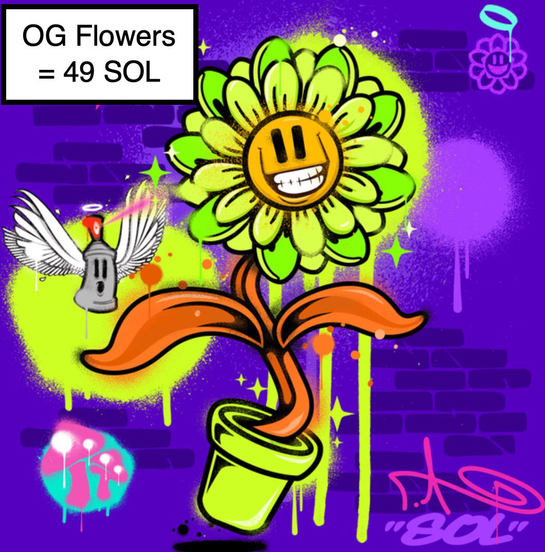2. If you went to Magic Eden right now and searched for the OG SOL Flowers, you would see this flower on the floor for 49 SOL. (Was 36 SOL Yesterday lol)