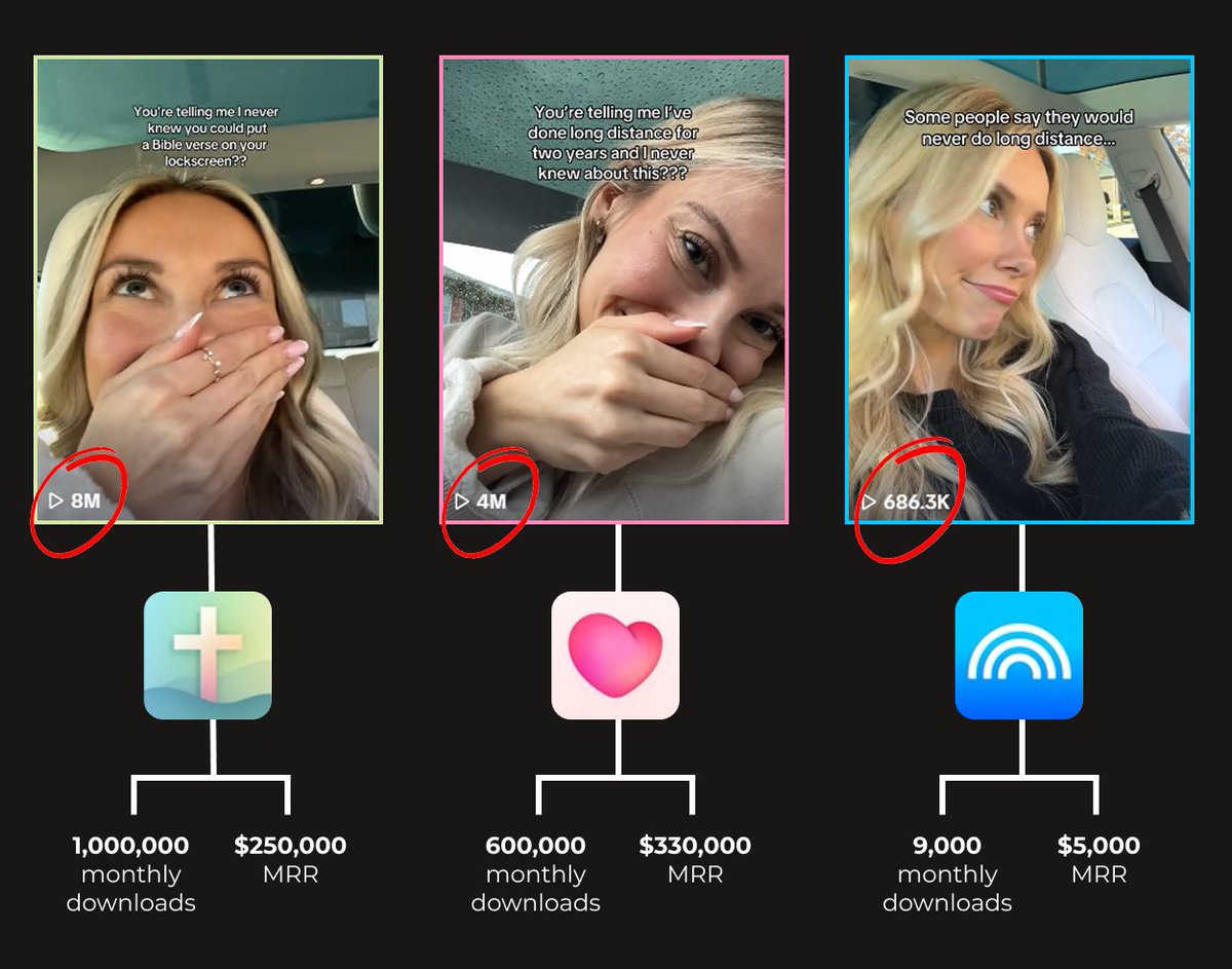 This affirmation app is doing 5,400,000 ARR & 400,000/mo downloadshttps://twitter.com/1836025785548689408/status/190054677121586402118/ Creator cut over background