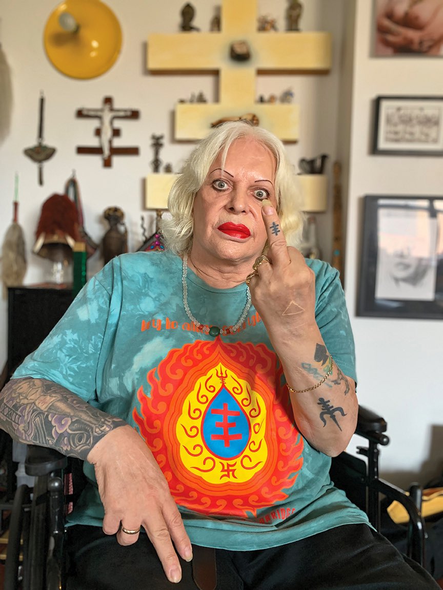 Genesis P-Orridge was the front person of the band Psychic TV and considered themself a disciple of Aleister Crowley and William Burroughs. They’re performance art had a tendency towards the extreme to say the very least (I mean like GG Allin level shit)