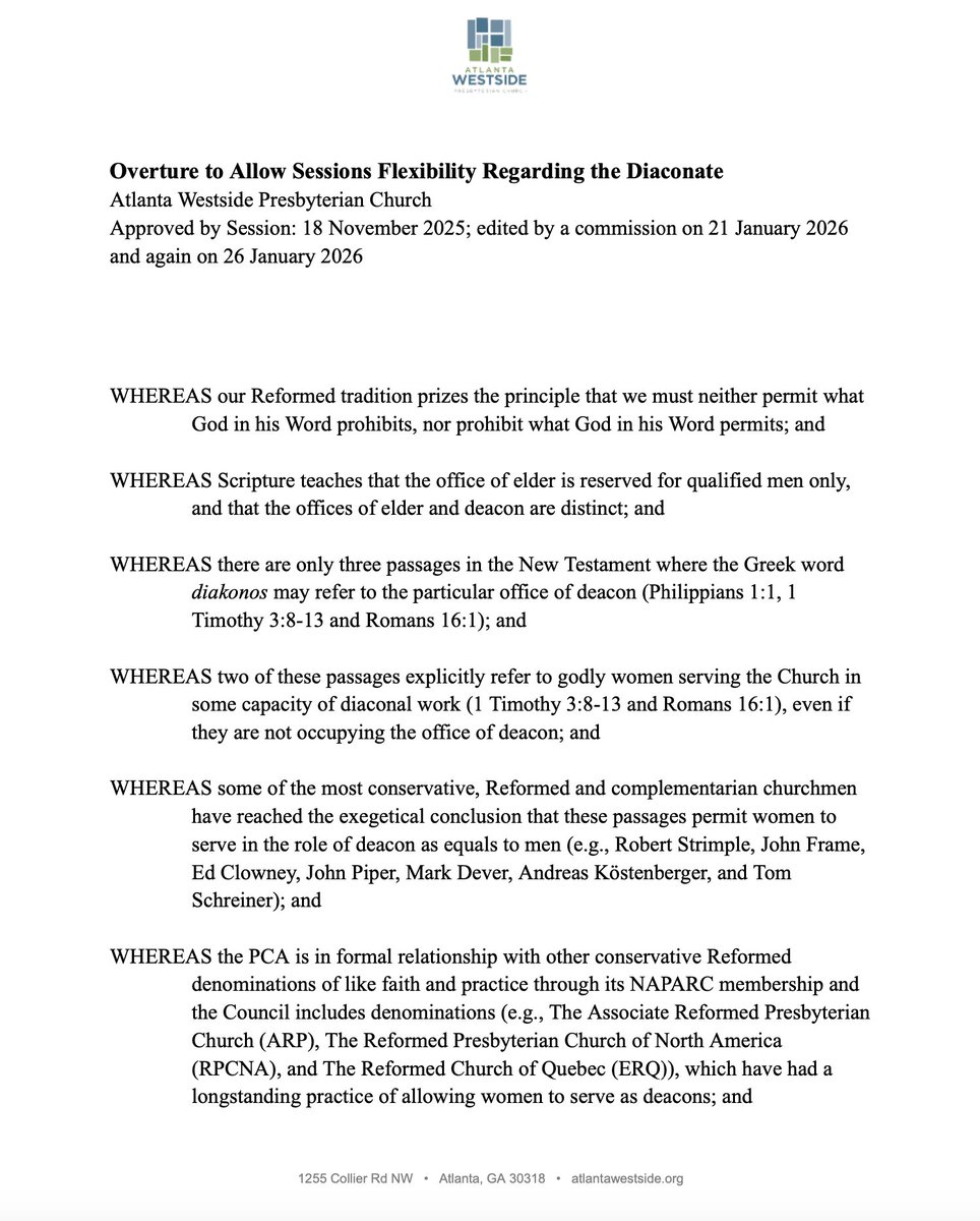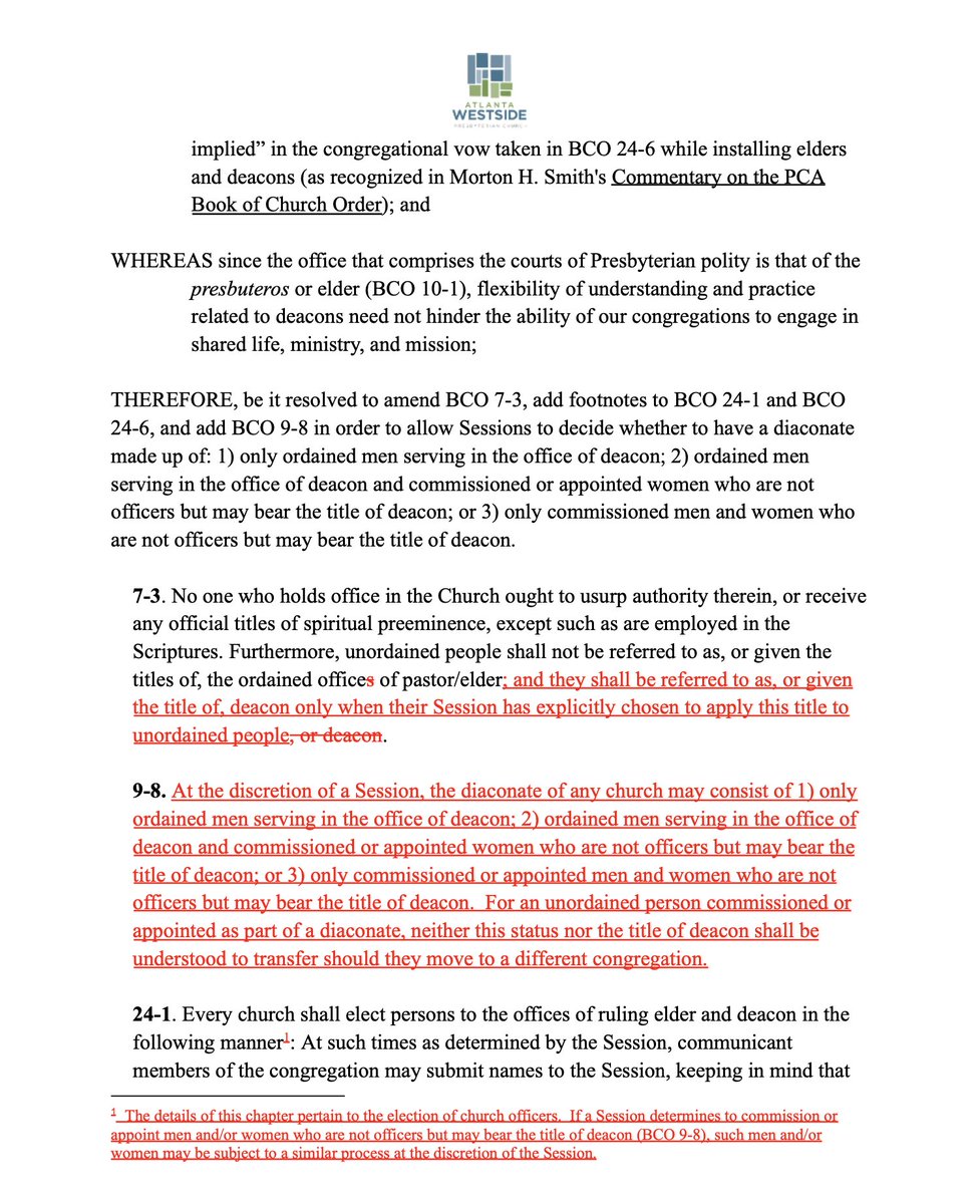 This is about female ordination. 2/ BTW, they edited their overture to be more conservative because they know there is one on the way that is pushing for an ordained female diaconate.