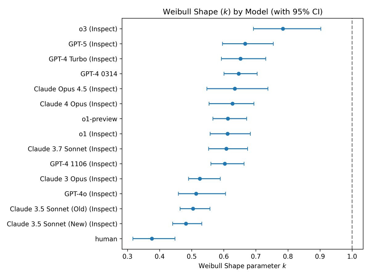 https://x.com/gushamilton/status/2018302284484968940@gushamilton This means that their success rates on tasks beyond their 50%-horizon are better than the simple model suggests, but those for tasks shorter than the 50% horizon are worse than it suggests.