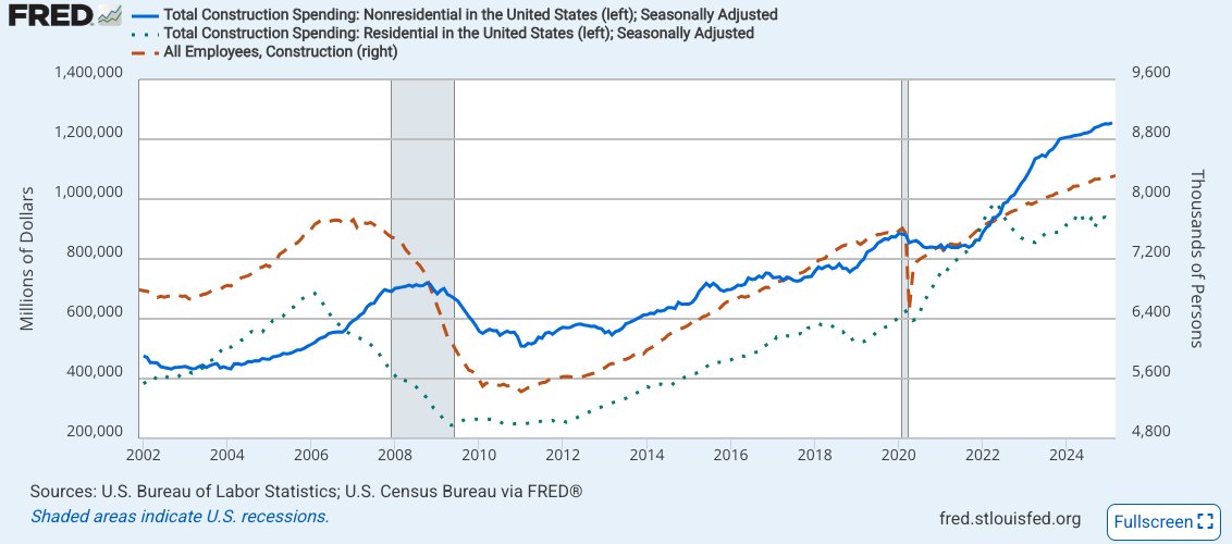 in previous downturns, subsequent price increase shocks were not as acute or burdensome for end consumer demand and so nonres cons could soften the downturn in res cons overall. well, this time around the price increases are so large that we may blow out bond measures and budgets