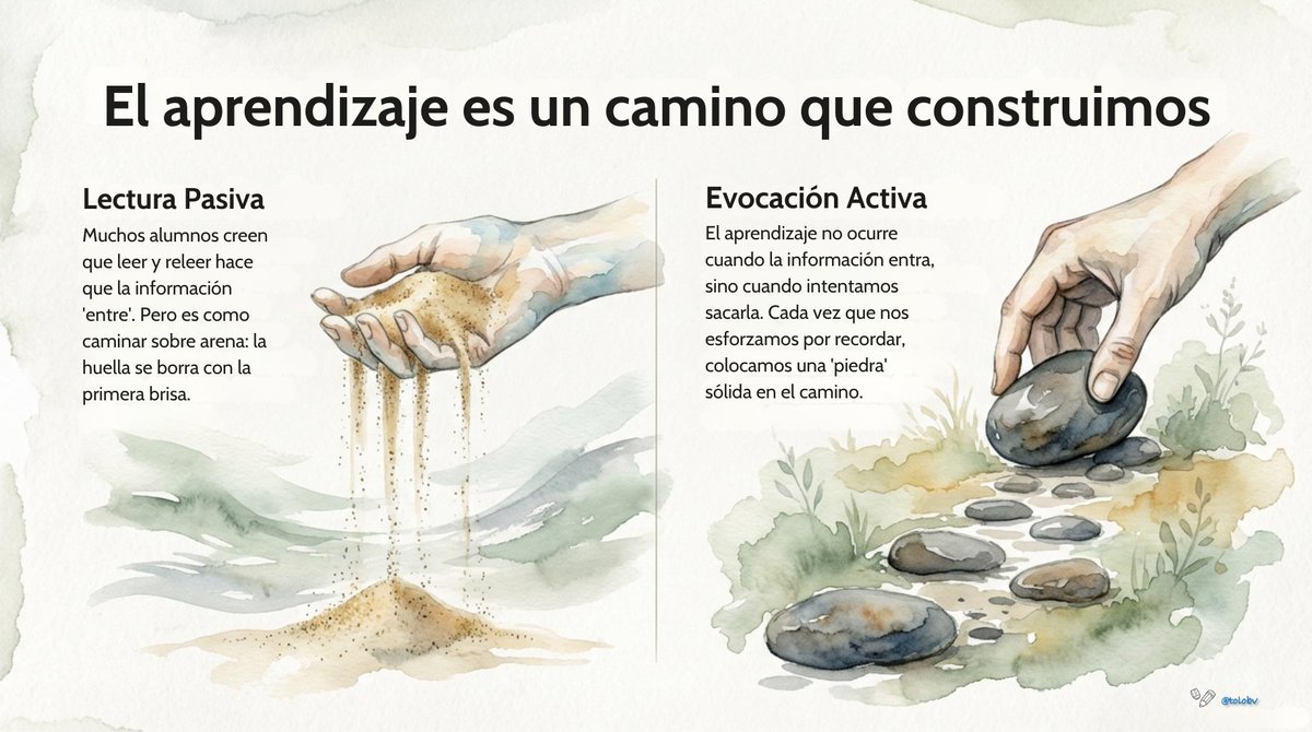 La clave no es meter información, sino sacarla. Aprender ocurre cuando nos esforzamos por recordar. No construyas en arena, construye en piedra. #ideasparaclase