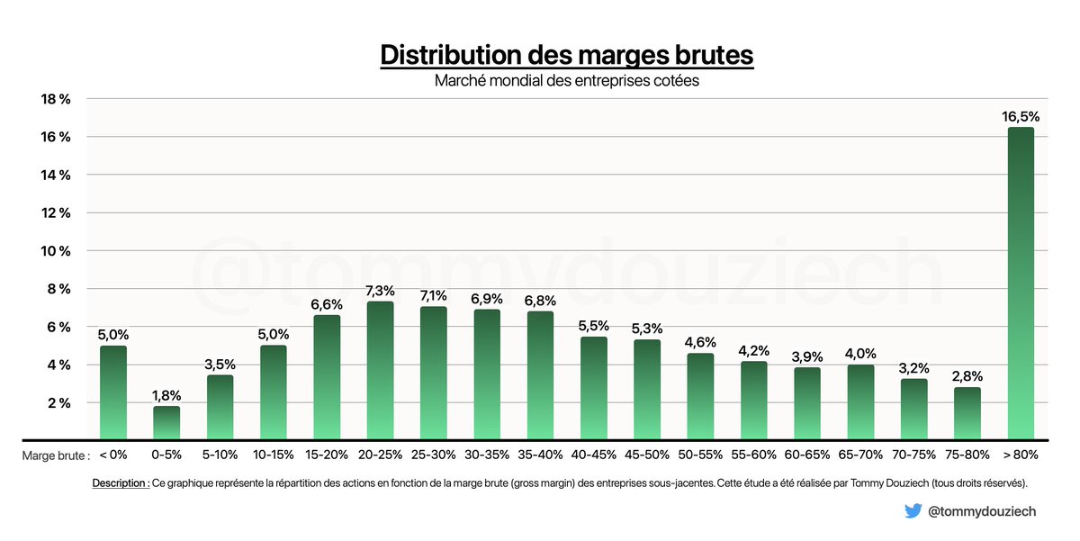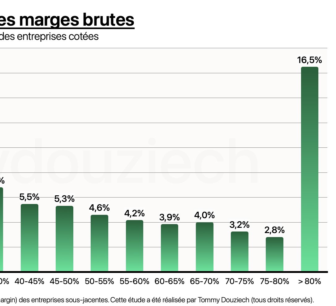 🟢 50% des entreprises cotées ont une marge brute supérieure à 40%.