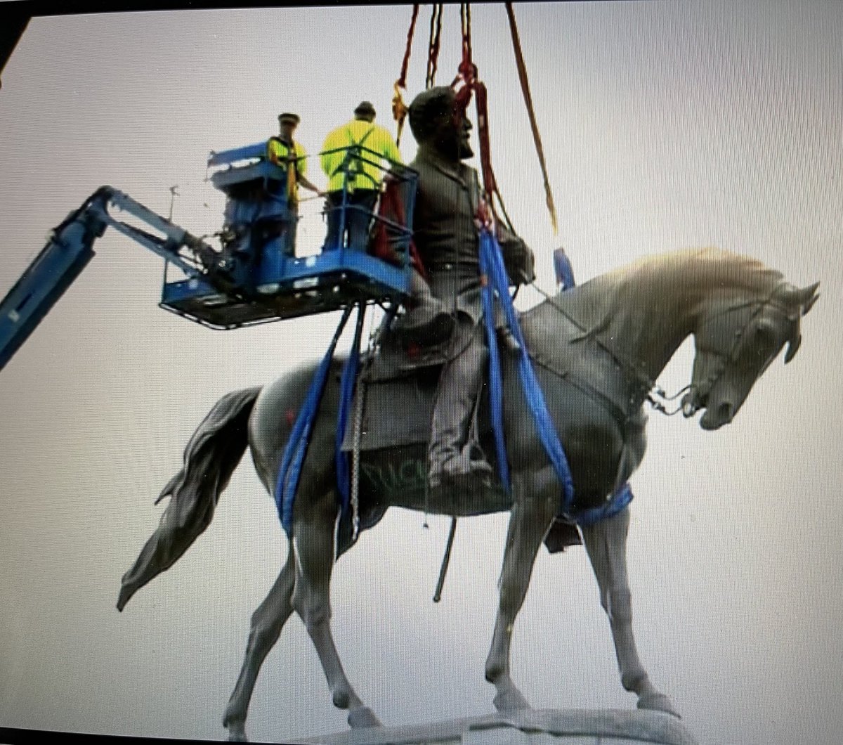 It’s happening. Robert E. Lee statue being removed in Richmond this morning… @politicshour