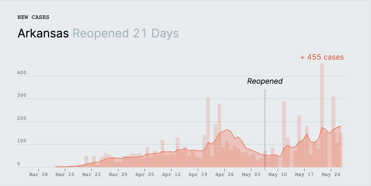 As more states move toward reopening and the national picture improves, we revisited some of the reopened states- many of which have seen upward trends in new #COVID19 cases since reopening.