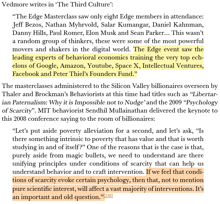 In 2008, Larry Summers, Richard Thaler and Cass Sunstein engineered a behaviorist revolution, creating "Nudge Units" in the Obama administration while partnering with Edge to train Musk, Bezos, and Thiel's executives in mass behavioral control.https://x.com/toxictiramisu/status/2031172732419789187