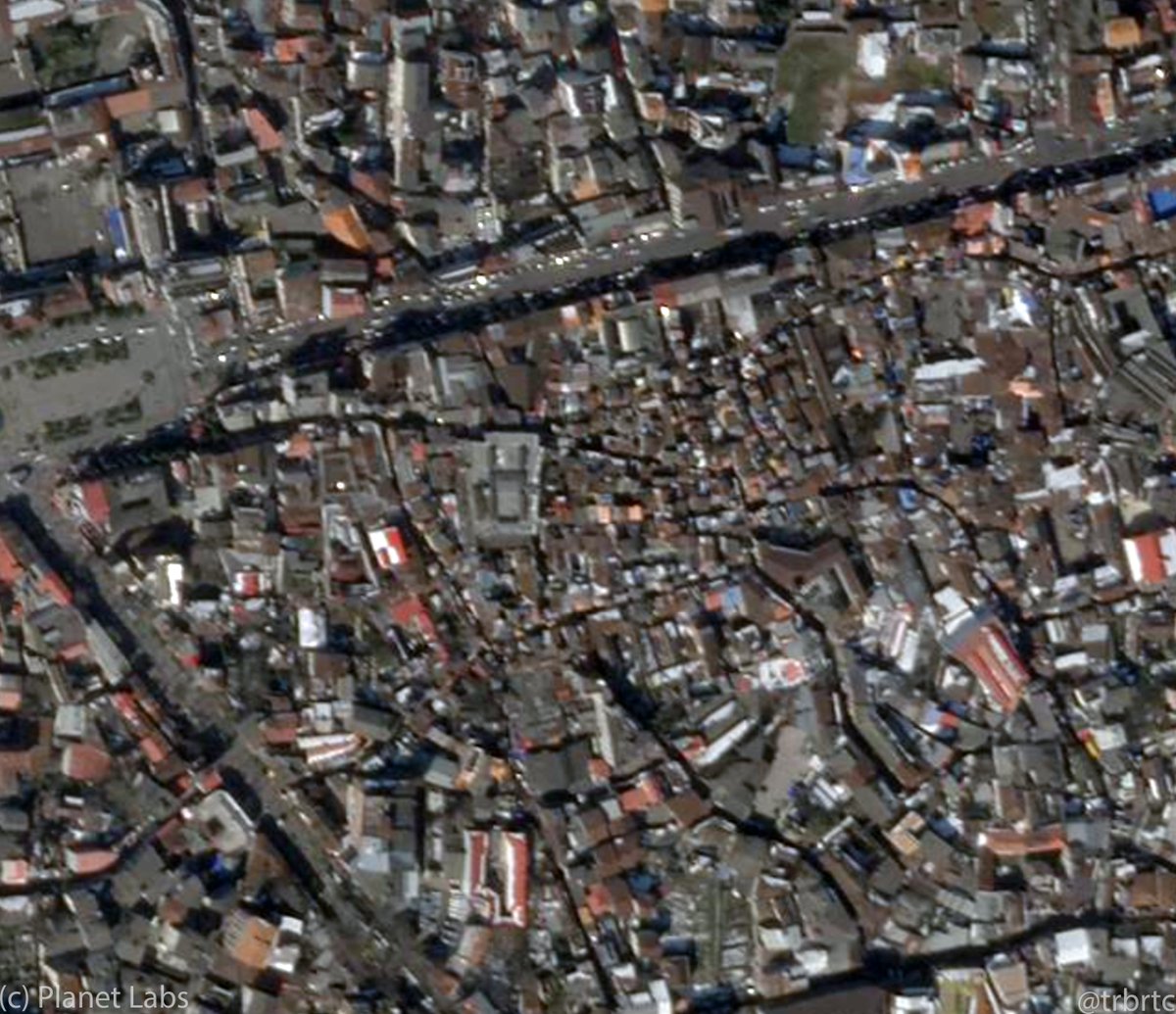 A satellite image captured by @Maxar on July 25 does not show the green cloth or the rubble on the first-floor roof, suggesting that the image above that's circulating is recent indeed. The building is adjacent to the Saadabad Palace, and near the president's official residence.