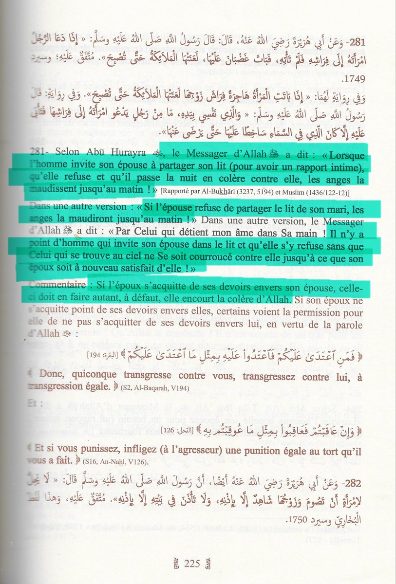 🔸"Et on dit, et c'est le dire qui est juste, qu'il est obligatoire à la femme d'être au service de son mari. Car l'époux est son maître dans le livre d'Allah et elle est une captive dans la Sounna du messager d'Allah. Il appartient au captif et à l'esclave d'être au service de leur maître, parce que c'est l'usage convenu."