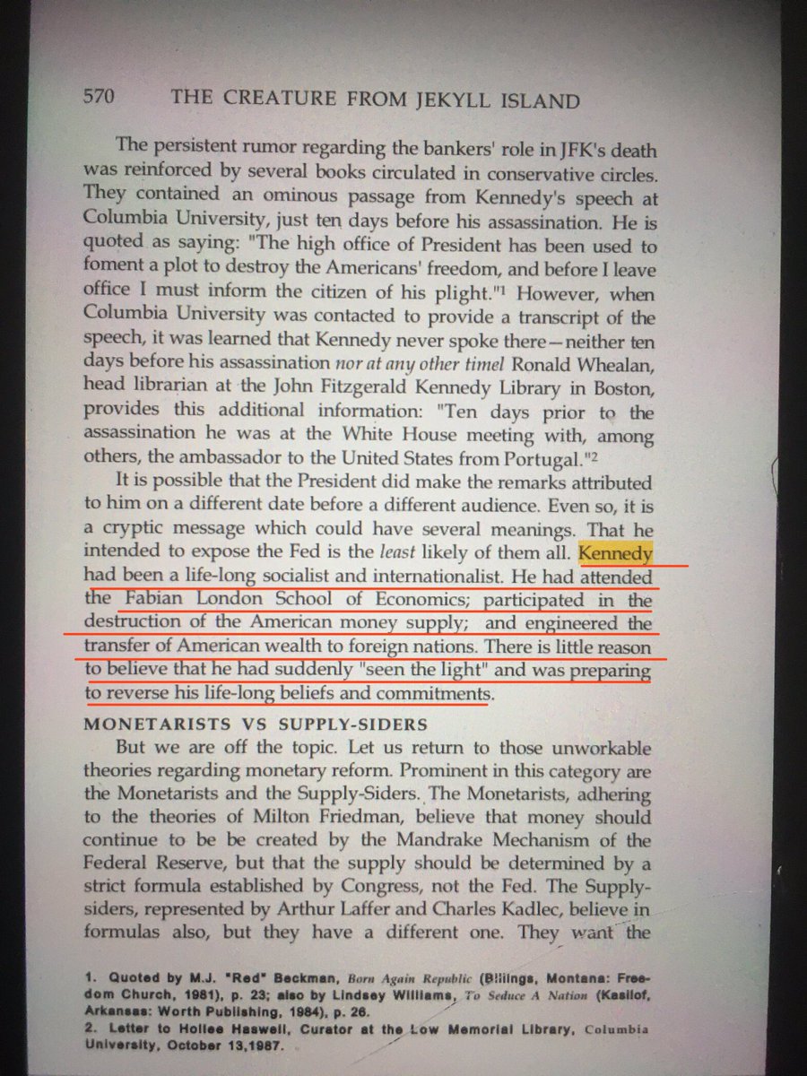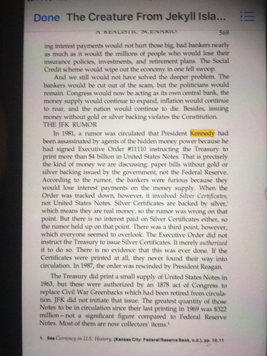 Also claims JFK gave an executive order to treasury to issue silver certificates was false, he merely authorized them the ability to do so. He also never made a speech @ Columbia āthat high office of the Presidency has been used in a plot to destroyšŗšøā