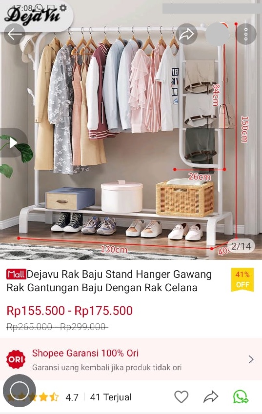 1. Dejavu Rak Baju Stand Hanger Gawang dengan rak celana