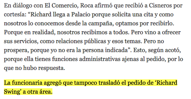 Primer audio: 1. Vizcarra le dice a su equipo que recuerda que máximo recibió a Richard Swing dos veces porque hubo mucha insistencia de parte del cantante. 2. La secretaria general de Palacio, Miriam Morales, agrega que hay 5 registros de ingreso, pero solo 2 son públicos.