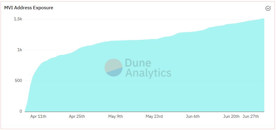2/ There are ~1,300 wallets holding $MVI & around 80,000 units issued. At the peak, we had ~$7m in AUM & ~$8m in Uni liquidity.
