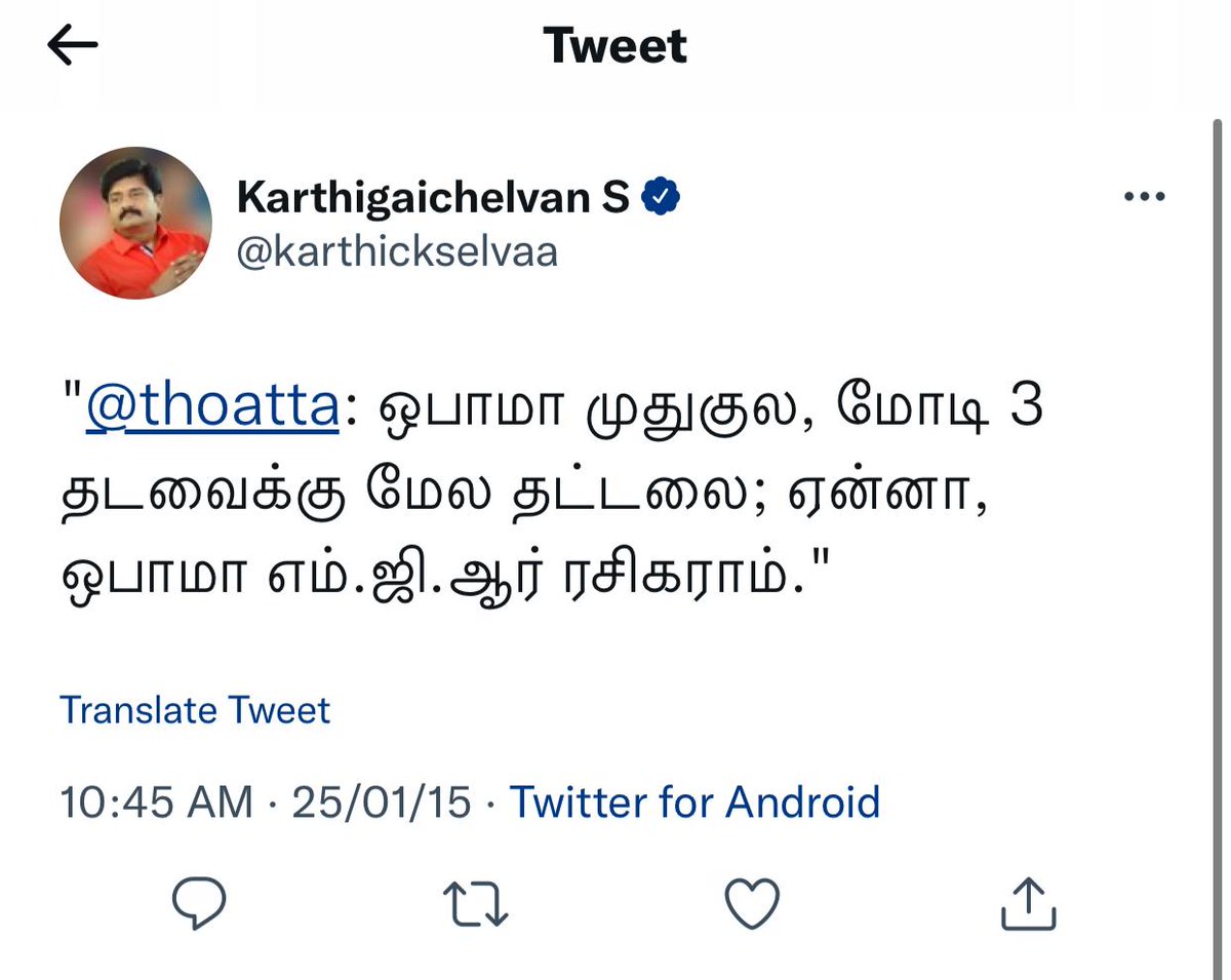 The art of jumping from the frying pan into the fire seems to have been perfected by @CNNnews18. After letting go of @GunasekaranMu for biased reporting they are going to hire @karthickselvaa a rabid DMK acolyte whose objectivity has come under fire in the past. Some examples 1/n