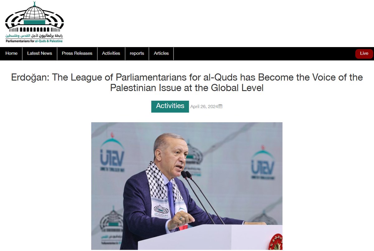 1/15 La Ligue des Parlementaires pour Al-Quds et la Palestine (LP4Q) est une organisation de lobby anti-israélienne basée à Istanbul et soutenue par le gouvernement turque et le Qatar. LP4Q affirme compter dans son réseau quelques 1500 parlementaires à travers le monde
