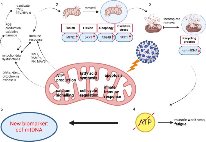 By comparing people who died from severe COVID-19, those who recovered, and healthy individuals, researchers found lasting changes in how mitochondrial genes are regulated. These changes were most prominent in genes involved in energy production and metabolism. 2/