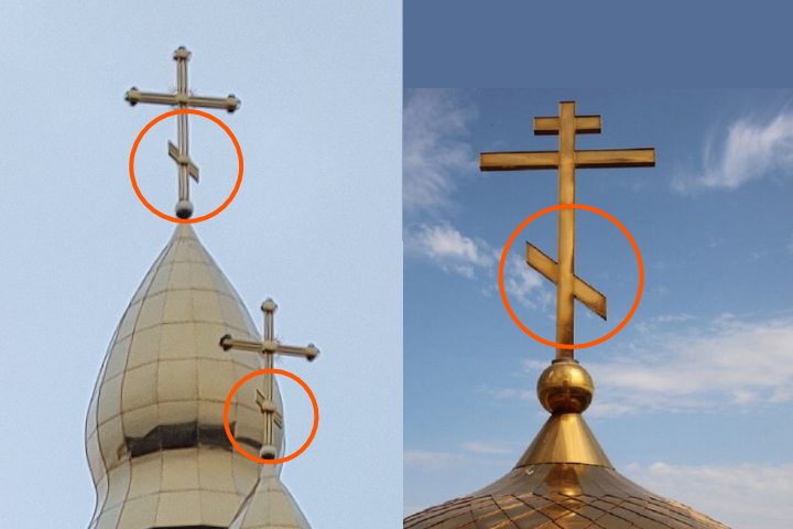 Церква це пояснює, що хрест без перетинки – католицький, а з нею - православний. Як доказ посилаються на фрески з Каппадокії 11 століття, де є ця перетинка. Однак навіть у Візантії це був радше виняток, ніж правило. І такий хрест на думку експертів, до нас прийшов саме з Москви.