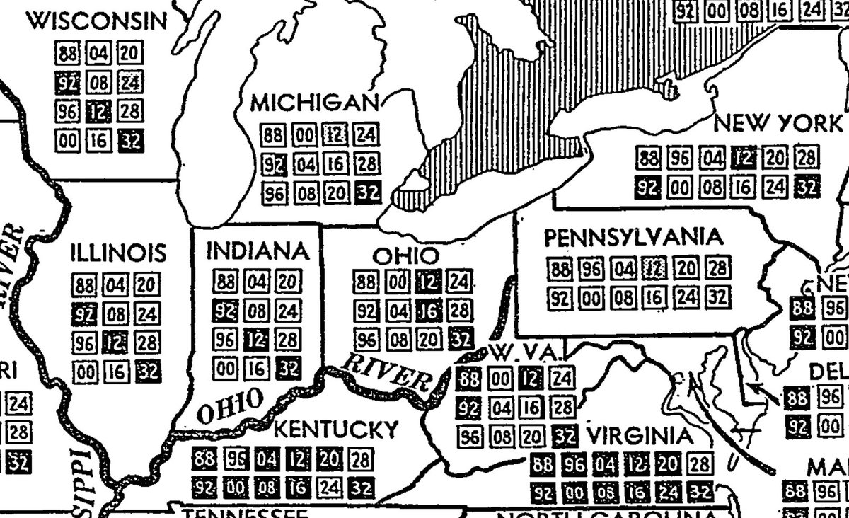 Four years later they decided they'd break it down by electoral votes with lil boxes AND go TWELVE elections back!