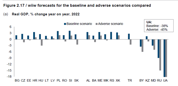 The 11 EU members of the CESEE region will grow by an average of 3% this year in the baseline scenario; however, in the adverse scenario, which assumes an escalation of the war and a full EU energy embargo against Russia, they would stagnate (0.1%) in 2022. 2/7