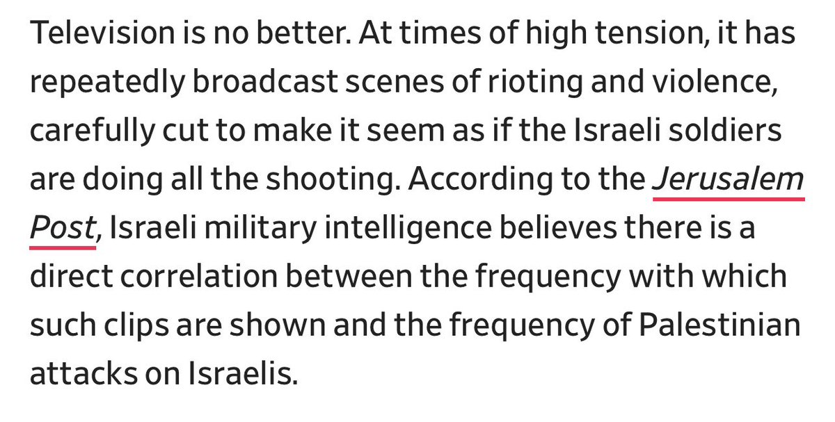Zarzuty wobec telewizji są poważniejsze - relacjonuje starcia izraelskich wojsk z Palestyńczykami w stronniczy sposób który eksponuje brutalność IDF-u i radykalizuje Palestyńczyków.