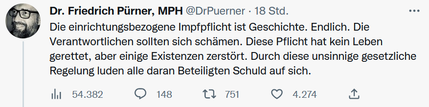 https://twitter.com/dokhollidays/status/1607452862677745665Sie glauben wirklich, dass die Maßnahmen falsch waren und alle NPI nicht wirken und dass das wissenschaftlich bestätigt sei. Viele "Experten" reden ja auch so. Jetzt wollen sie Revanche für alles, was ihnen "angetan" wurde und wollen die Vorsichtigen dran kriegen.